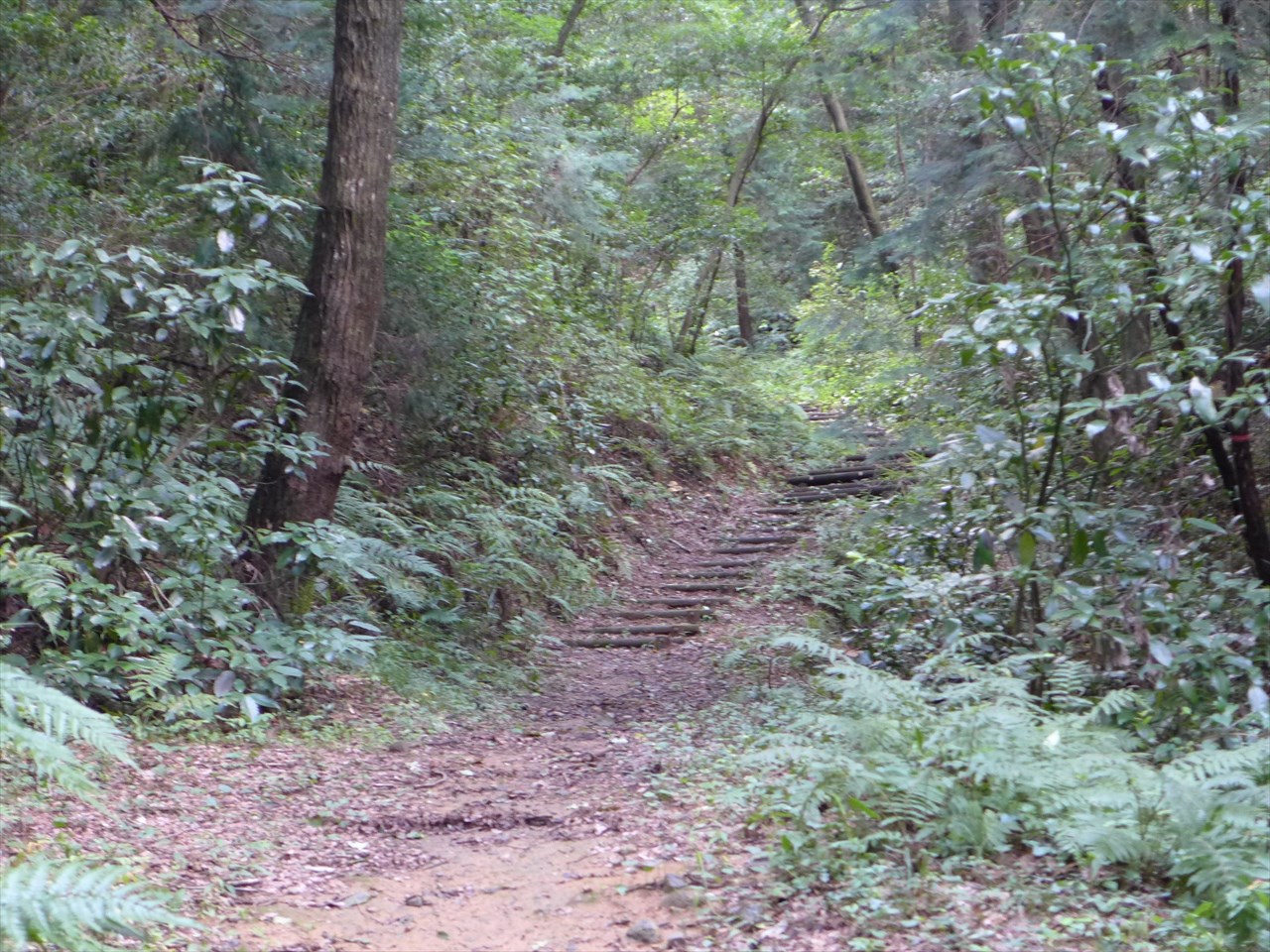 尾根へと向かう階段の手前で体力温存のため引き返す。