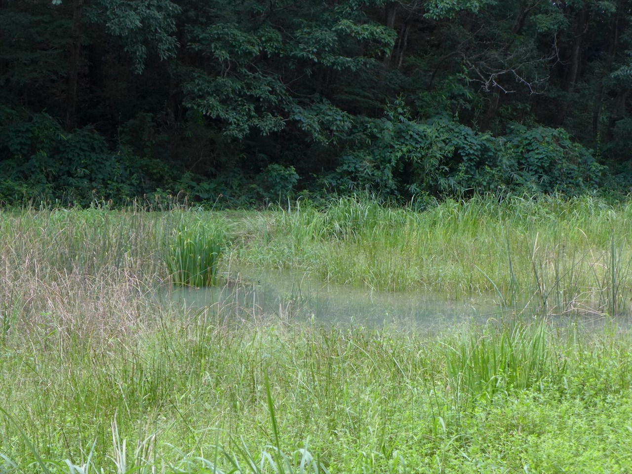 右側は、前々日の台風による豪雨の影響もあるのか、かなり水が溜まり湿地帯のようになっていた。