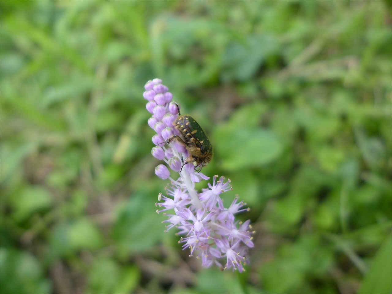 金色の斑模様がついたコガネムシ。