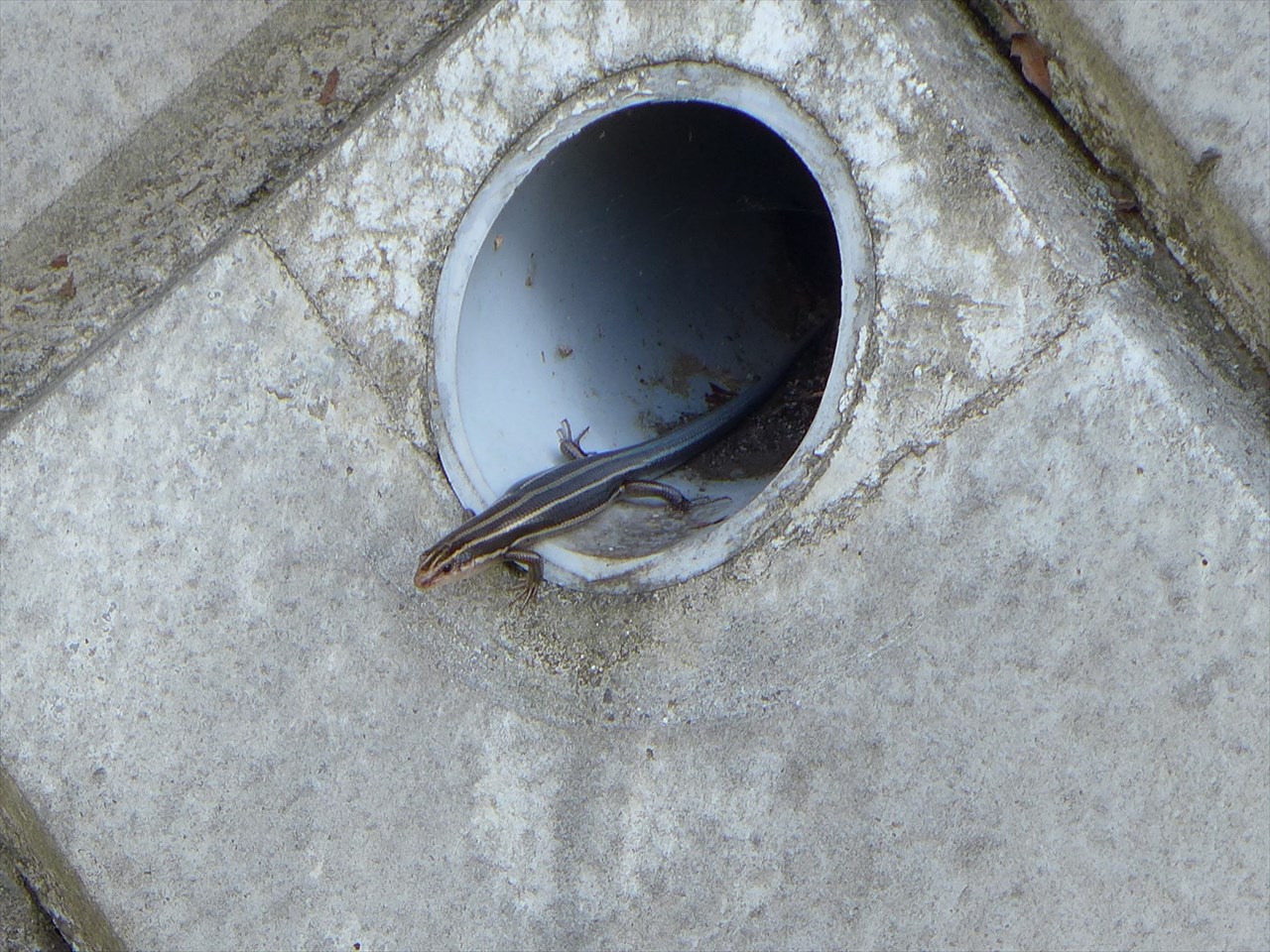 食後すぐなのか、おなかあたりずんぐりしたニホントカゲ。