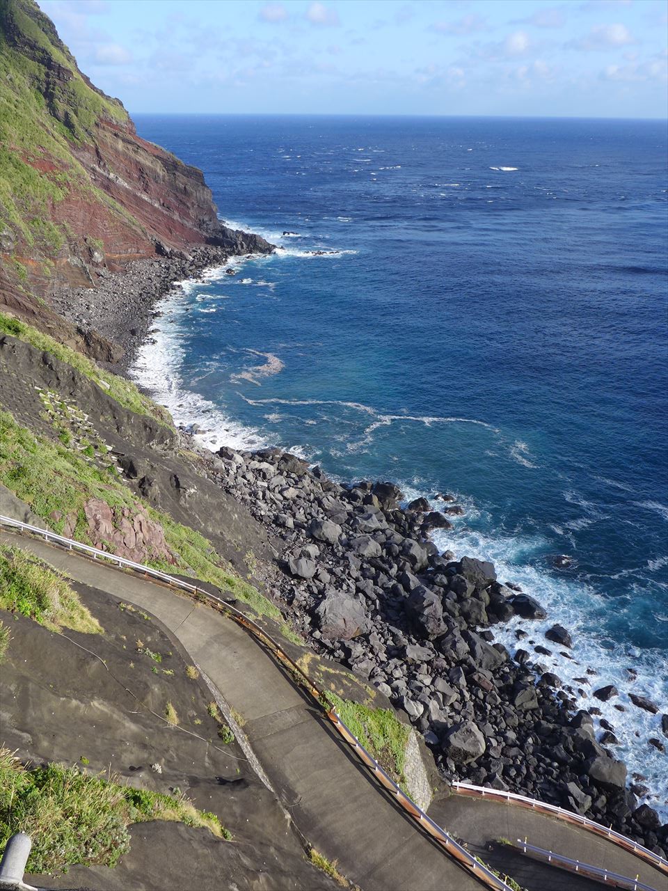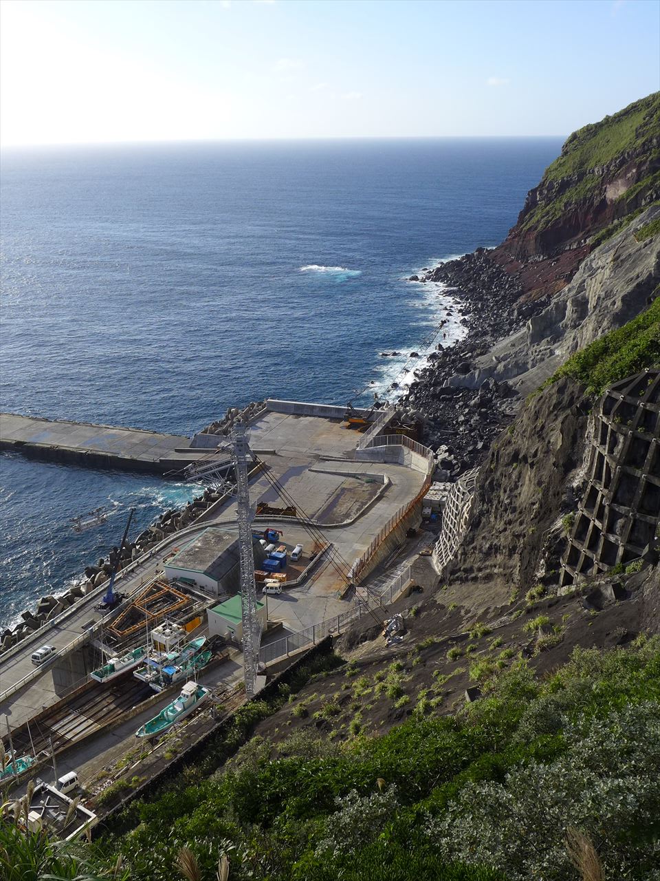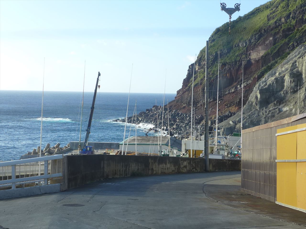 これだけの角度だと歩いて登るのも相当しんどそうだが、八丈島から船で渡ってくる場合には必ずこの港に着くので、時間があればちょっと頑張って登ってみてもいいだろう。