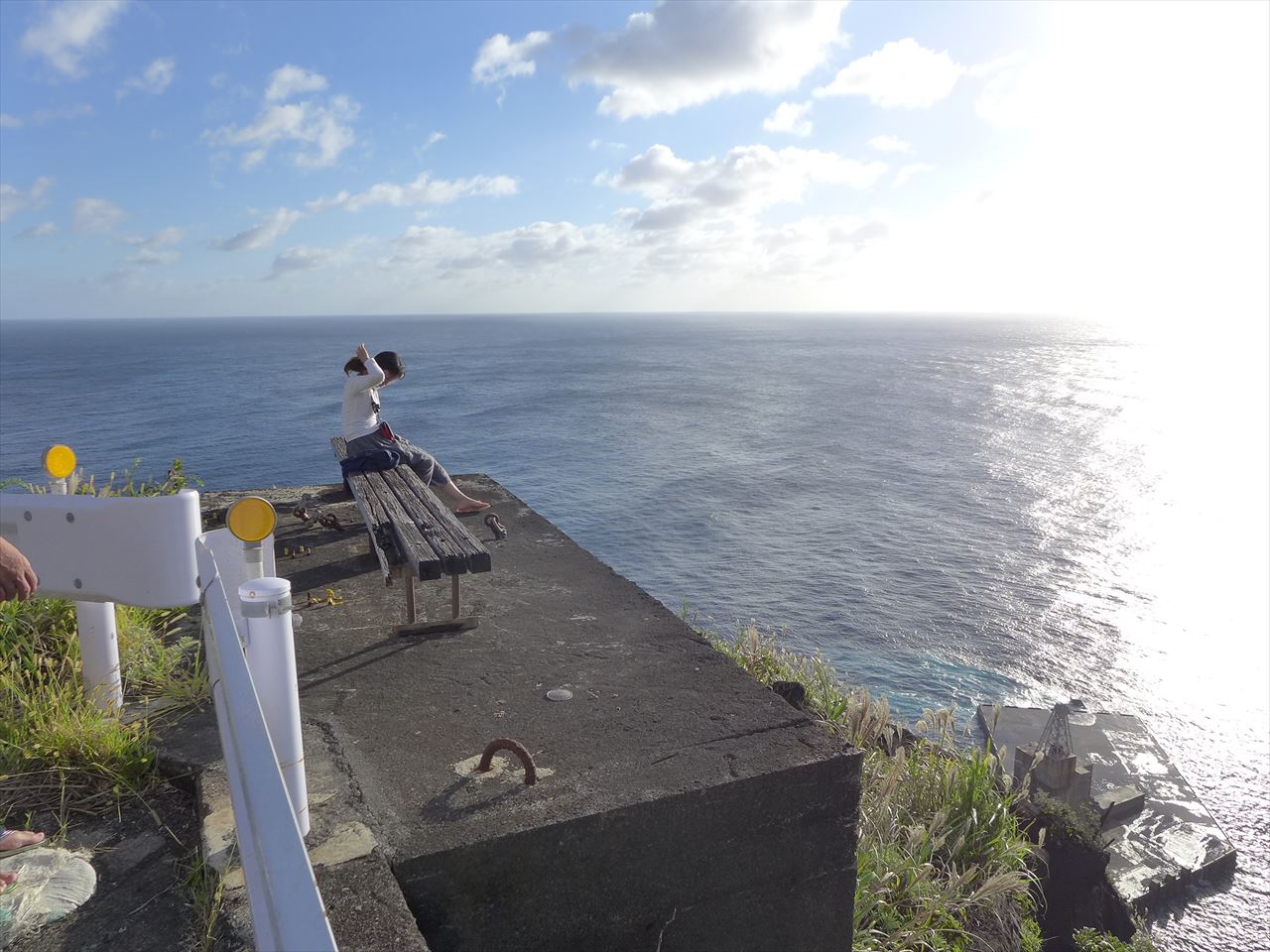 というか、なぜガードレールの外の切り立った崖の上にベンチが!?