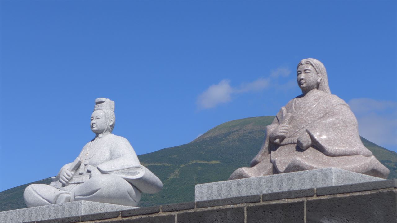 宇喜多秀家と豪姫の像。