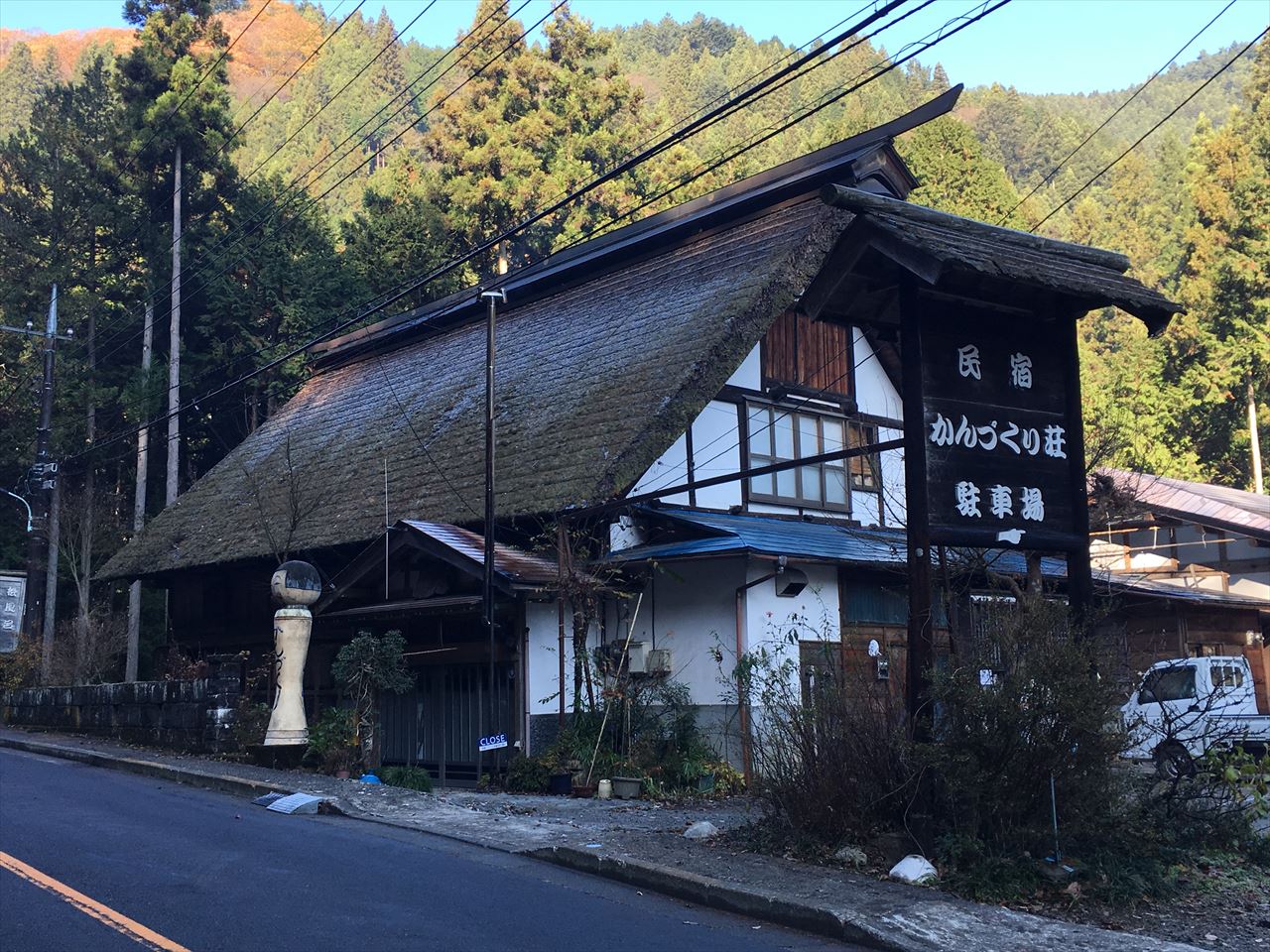 茅葺屋根も立派な民宿、かんづくり荘。
