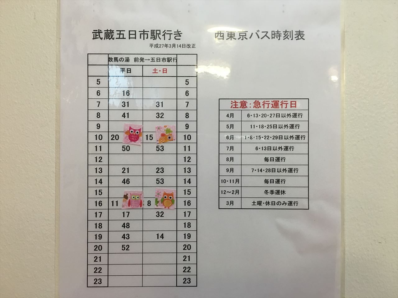 車・バイク以外で行くなら、JR武蔵五日市駅から路線バスがでている。