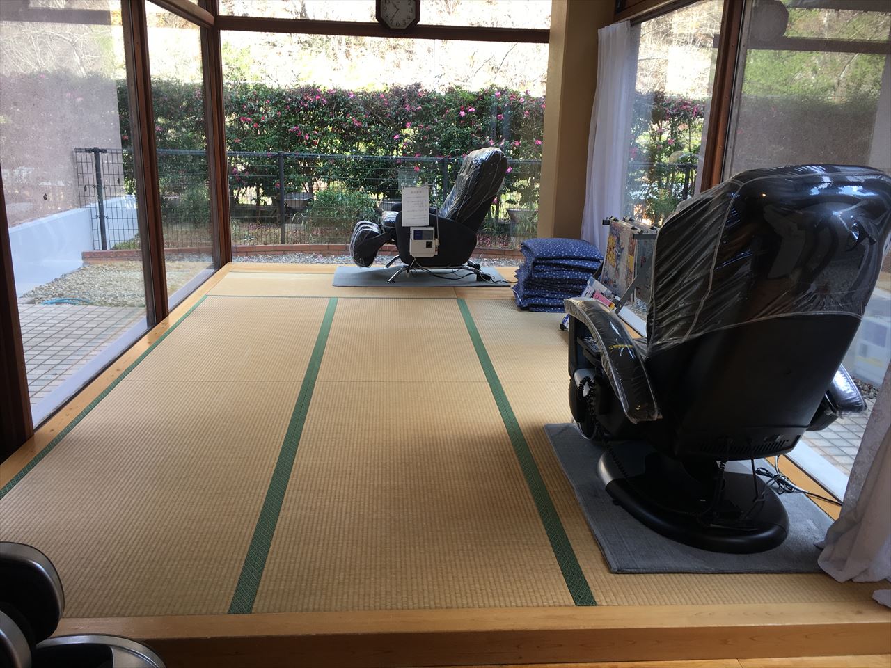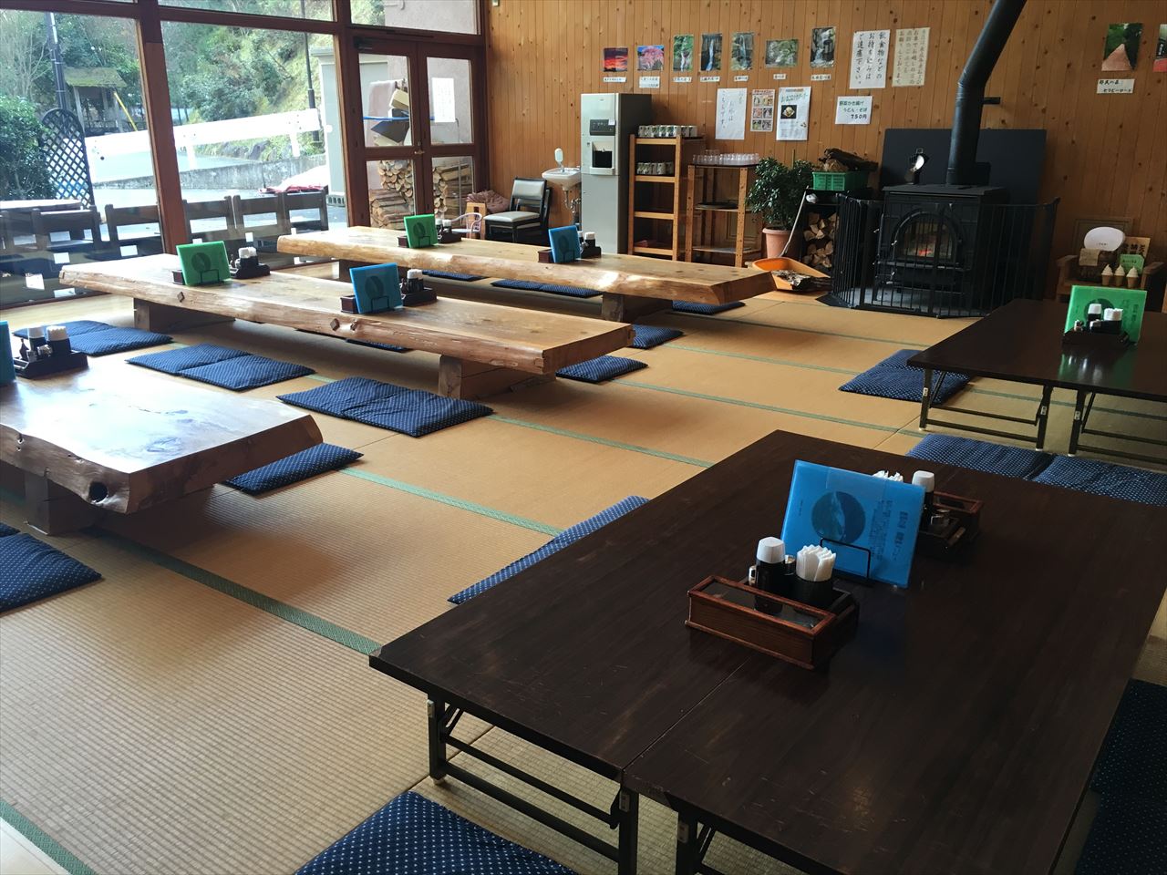 左側の大きな窓があるところは休憩室兼お食事処。