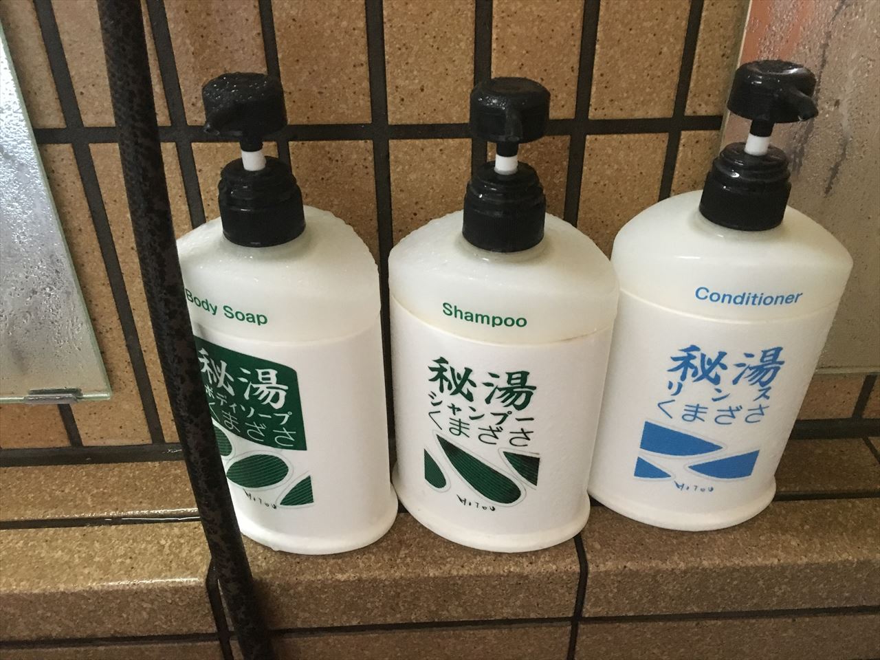日本秘湯を守る会で販売しているシャンプーやボディソープが置かれていた。