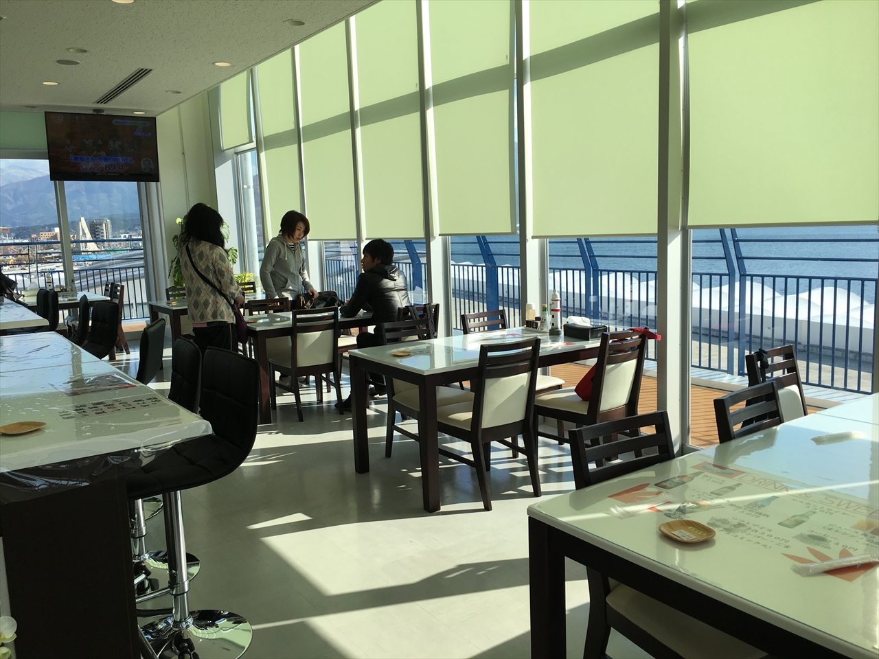 全面ガラス張りの店内、目の前は大船渡湾だ。