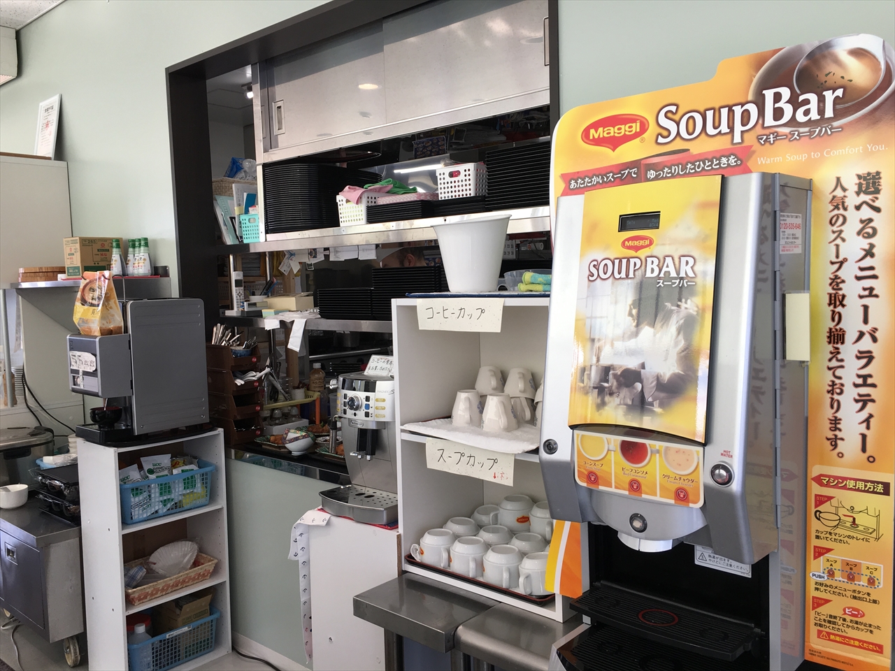 ここ、非常にうれしいことに、漬物やサラダ、みそ汁にご飯が無料セルフ。