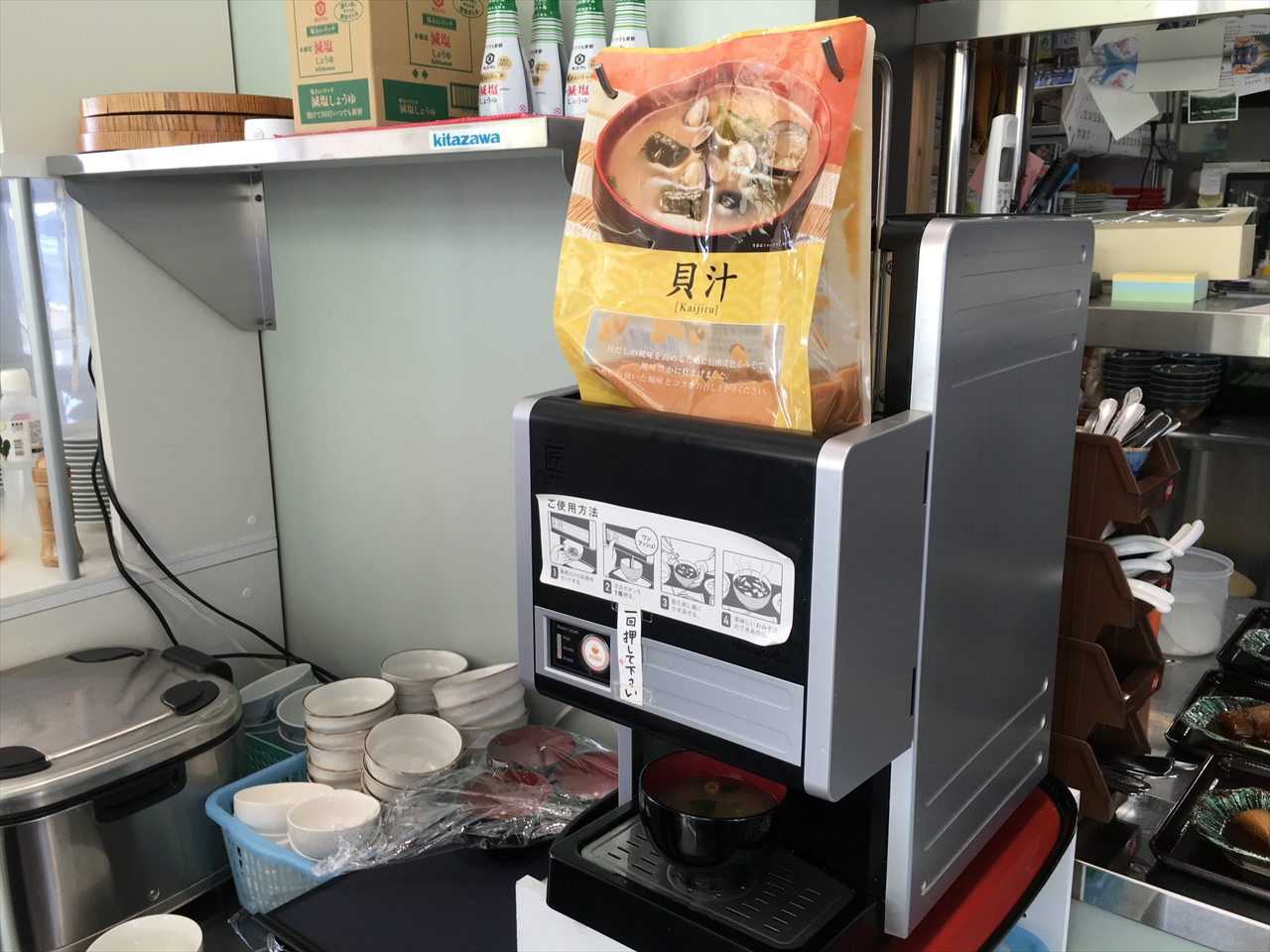 具が入ったお椀に、この機械でみそ汁を注ぐ。