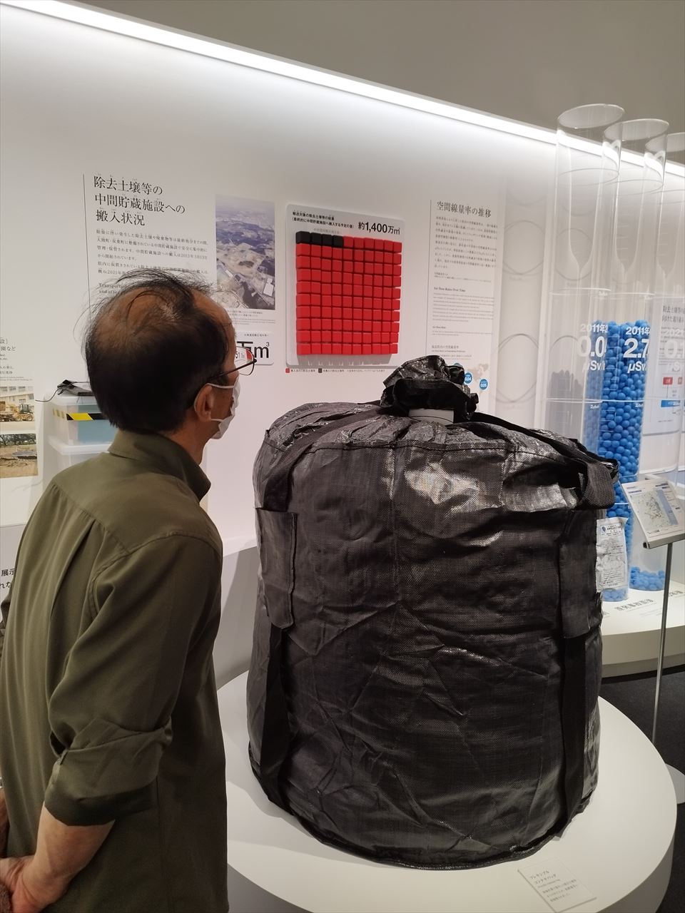 中には刈った雑草や落ち葉、土などが詰め込まれていた。今はバイクで走っていても目にすることはなくなったが、もちろん処分完了したわけではない。中間貯蔵施設に運び込まれたまま、今もすべて福島県内に残っており、他県への運び出しは実現していない。