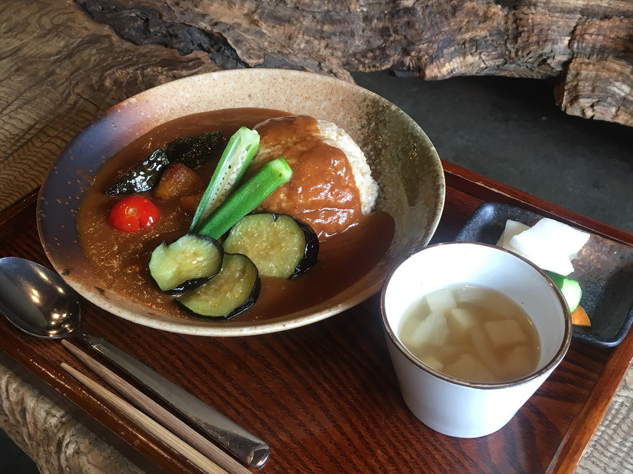 お昼は古民家のカフェレストラン「三宅商店」でカレー。