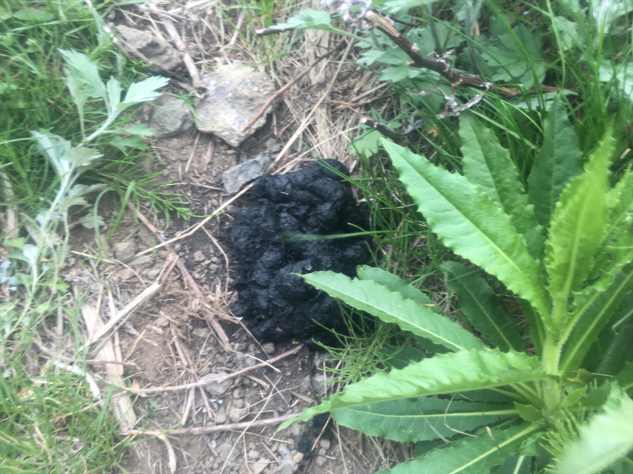 湊氏はフンを見つけると、どのくらい経過したものかや、成獣か小熊かなどの差を見ているようだった。