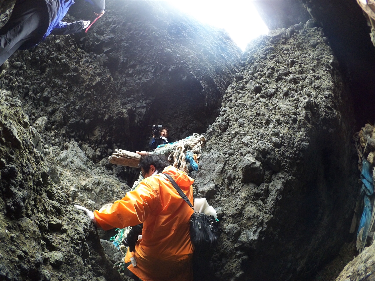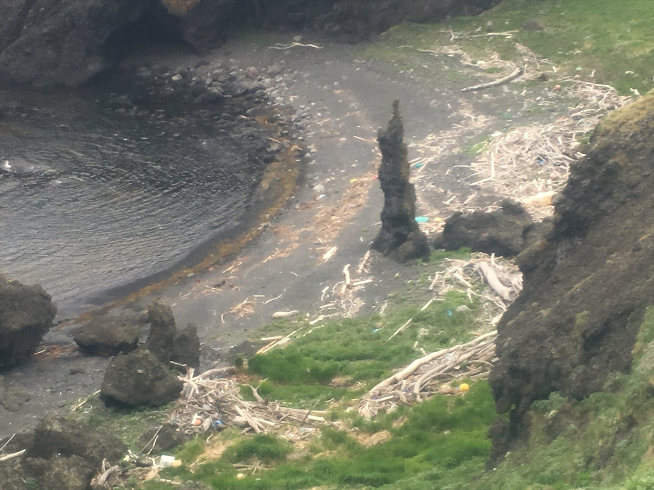 しんがりを務めていた船長さんに「前半で頑張りすぎると先が長い。岩場でばてちゃって結局誰かに荷物運ばせることになる。無理するな」と言われたため、万が一にもぎっくり腰を発症させて他のメンバーの重荷になってはいけないと慎重になってしまった(以前、東日本大震災ボラの海岸清掃に参加しぎっくり腰したトラウマあり)。