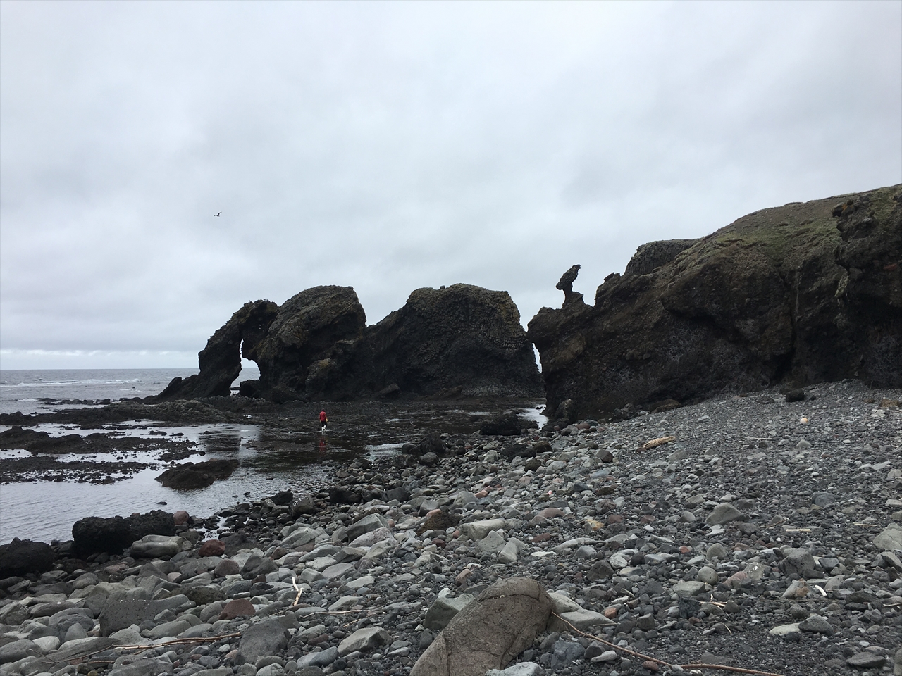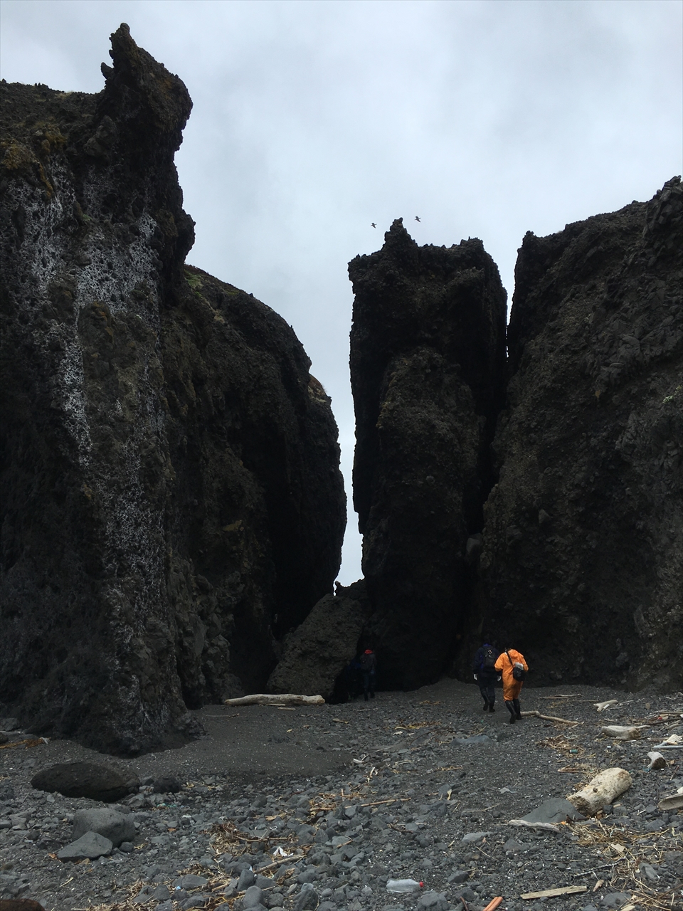 知床半島は、羅臼岳、知床岳、硫黄山といくつもの火山で構成されている。私は地質学の知識ゼロなので詳しくはわからないが、こうした奇岩ともいえる岩場が多数にょきにょきと生えているのは、やはり溶岩地形ゆえなのだろうか。