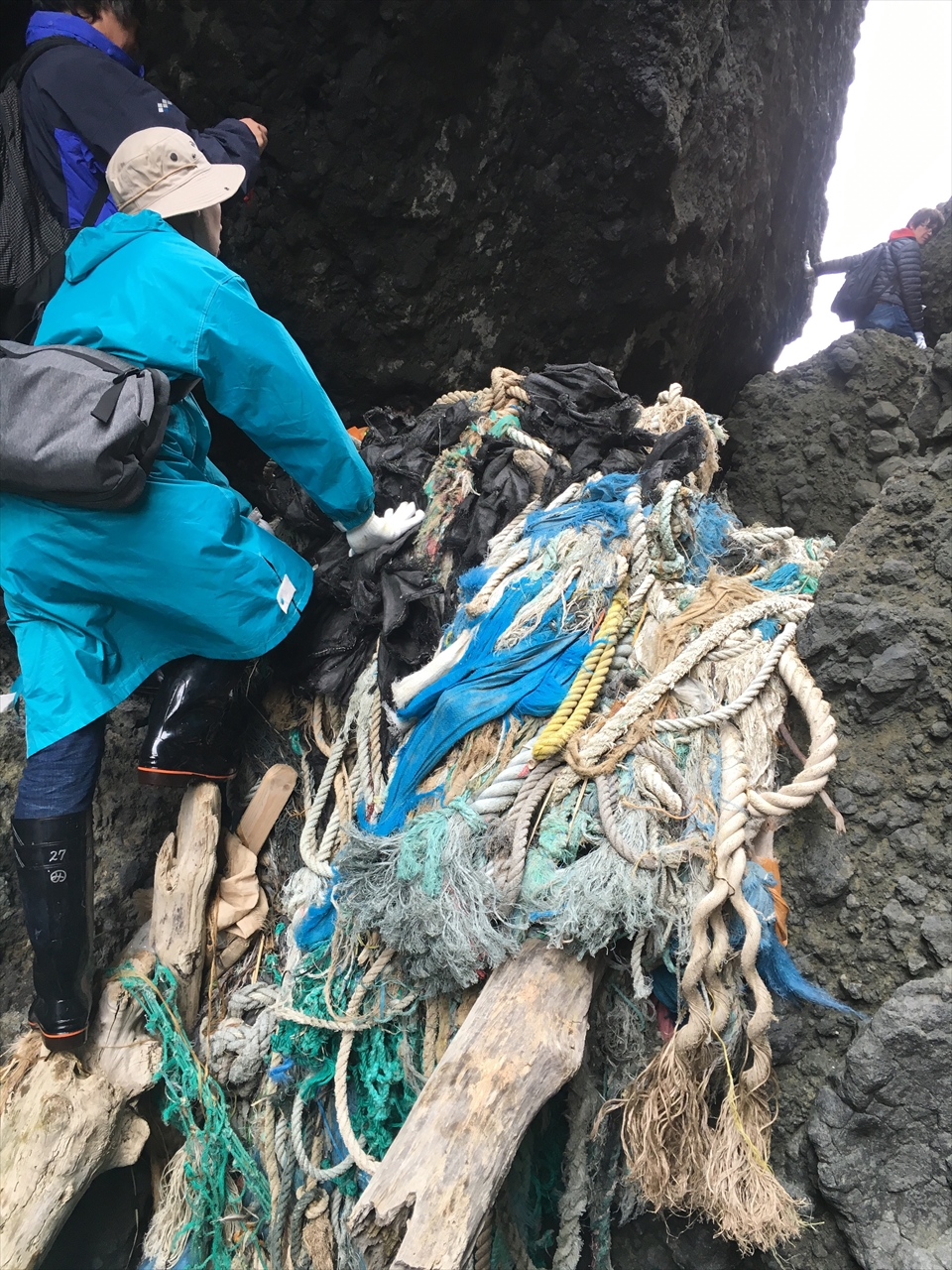 必ずしも故意に捨てられたものばかりではない。自然災害などによってやむなく流されてしまったもののほうが多いだろう。過酷な環境下での利用が前提となっている漁具は他の一般ごみと比べても耐久性が高く、長きにわたってゴミとして残る。簡単には切れないロープは、海鳥に巻き付いて自由を束縛し、命を危険にさらす。