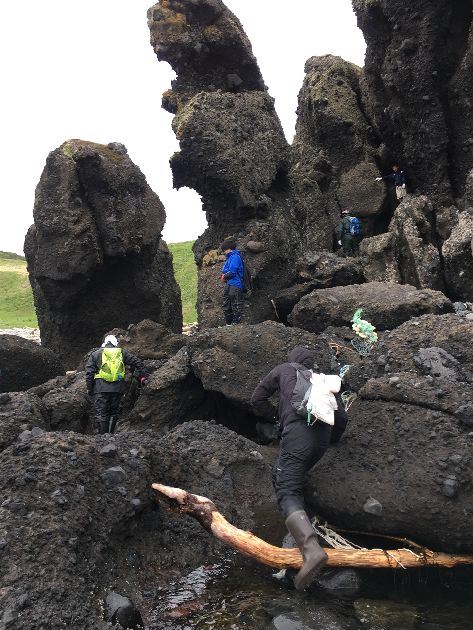 ただしここからまた、岩場を上り下りして船までの長距離を歩く必要があるため、「細かくなってしまう危険性の高いプラスチックゴミ」を優先して拾うことに。浮き球もたくさん転がっていたが、背負えなくなってしまうのでそれは見送り。