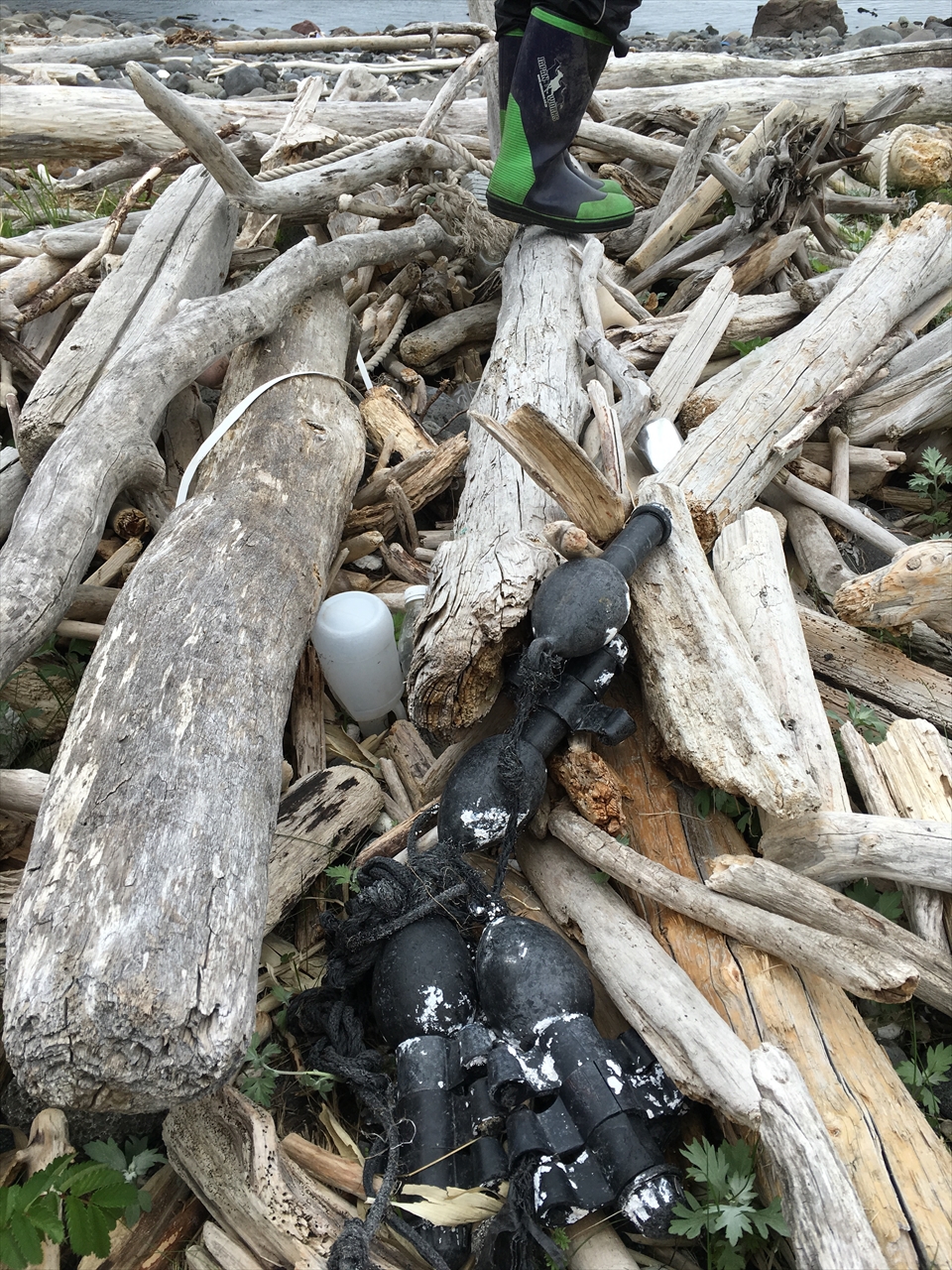 韓国からいったいどうやってここに?と思ったが、日本海側を本州にそって北上する対馬海流に乗り、それが津軽海峡を通る津軽暖流に乗って太平洋側に抜け、ここ知床半島までこうした漂流物を運んでくるのだという。