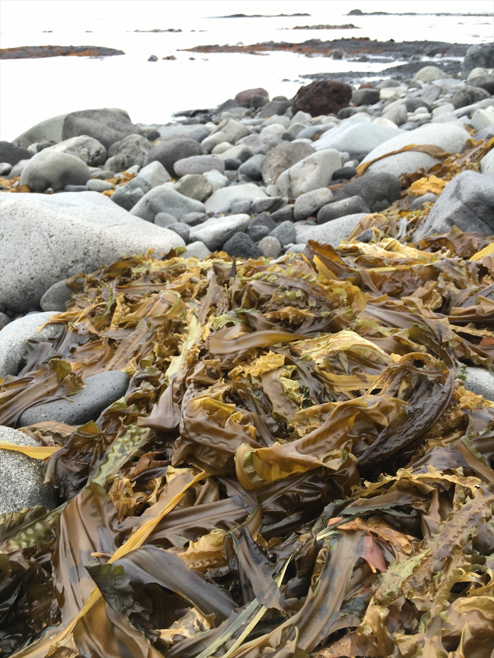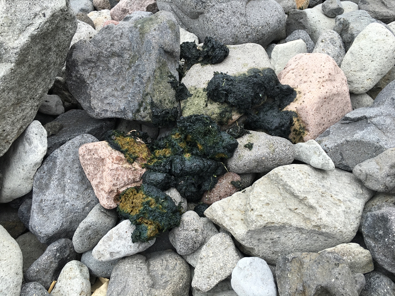 それが千切れ、漂流昆布やわかめのように海岸の石ころに張りついている。