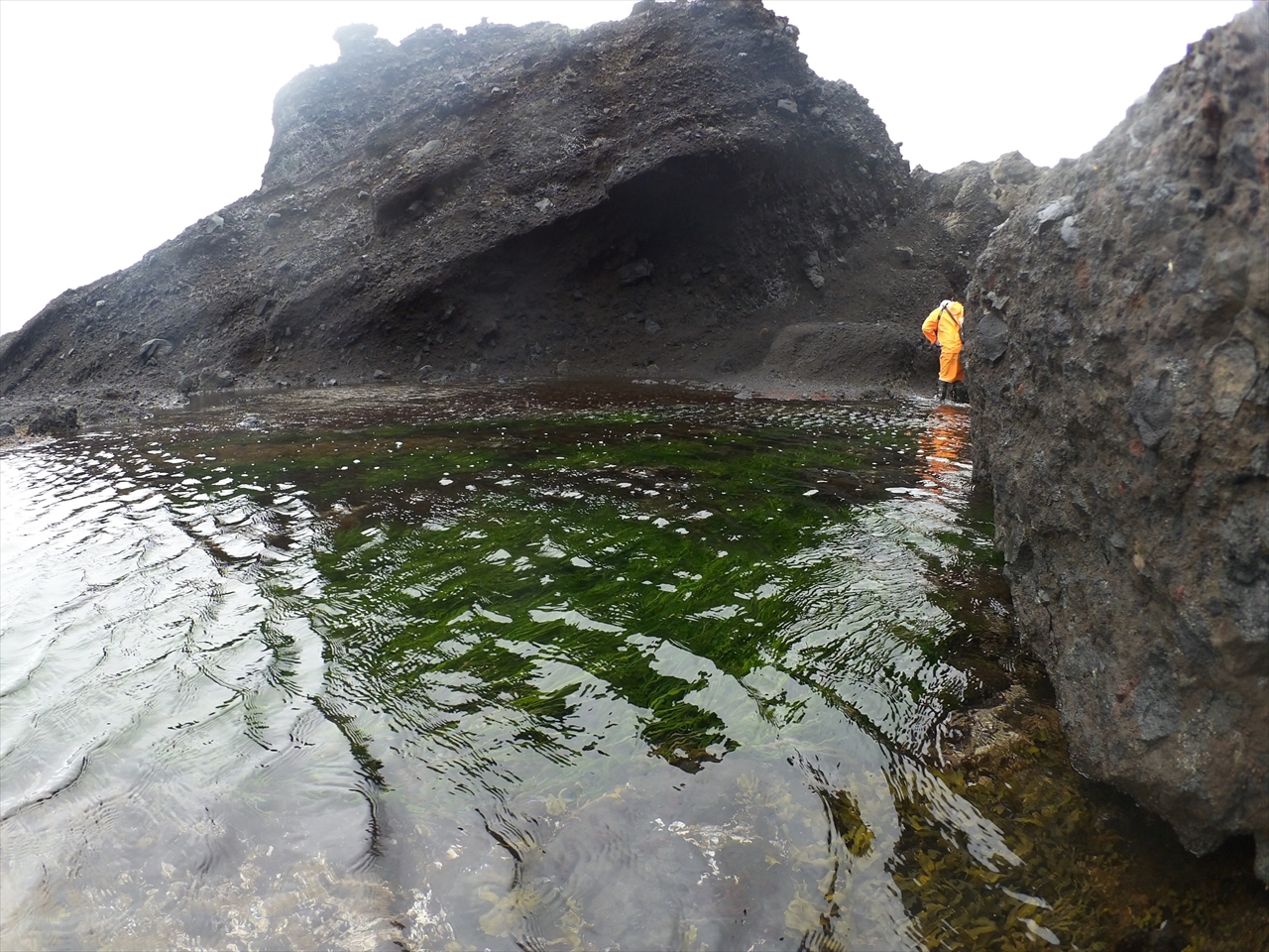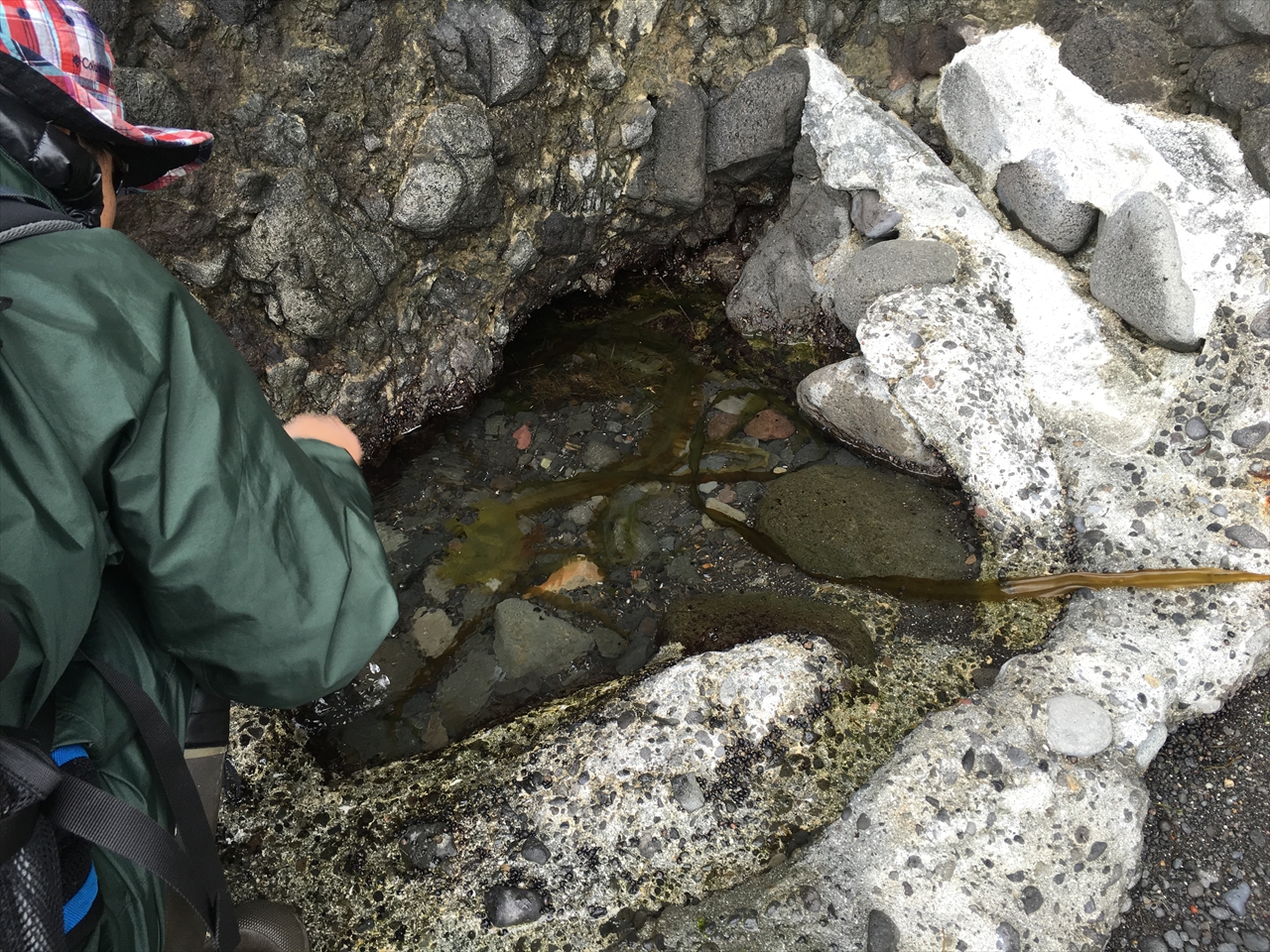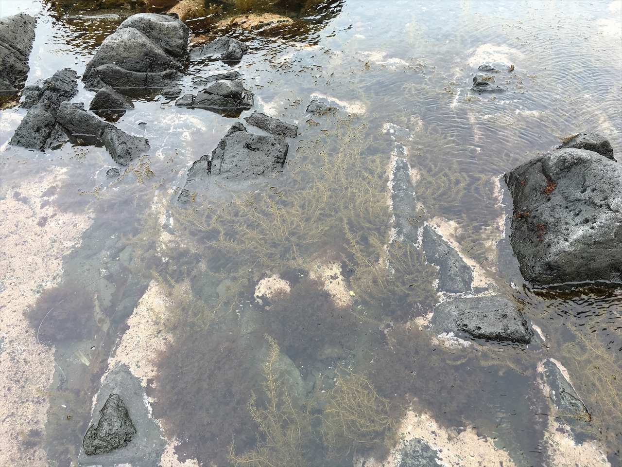 膝まである長靴のおかげで、海の中を歩いてもまったく濡れる心配はなかったものの、海中もごつごつした岩場だったり、まるで洗濯板のように斜めの歯状態になった溝が並んでいる場所もあり、歩くのは少々大変。