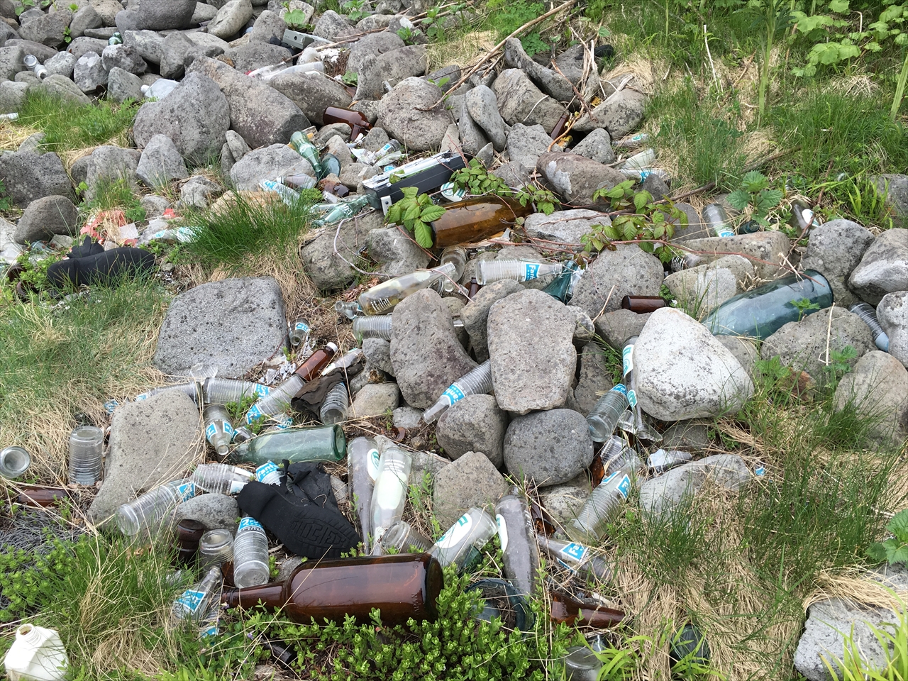 その途中の草むらにも、ビニール袋やペットボトルなどが点在している。