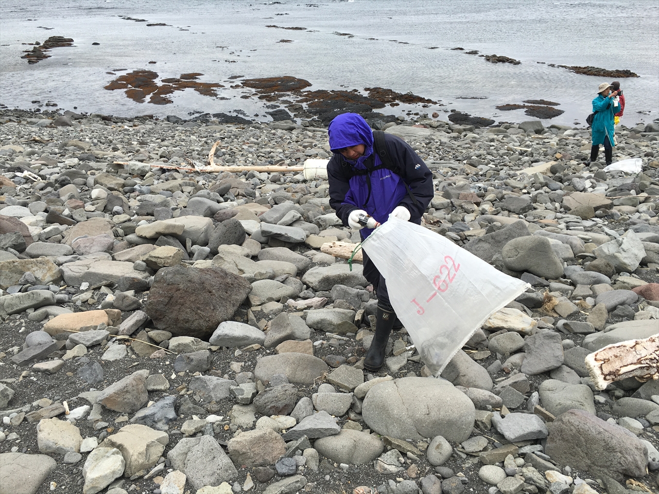 往路では荷物が重くなってしまうためゴミは拾わず、主に入り江ごとのゴミ堆積の現状を調査し、またメディア関係者やブロガーなどは写真を撮って記録することに注力したが、復路はゴミを拾いながらだ。