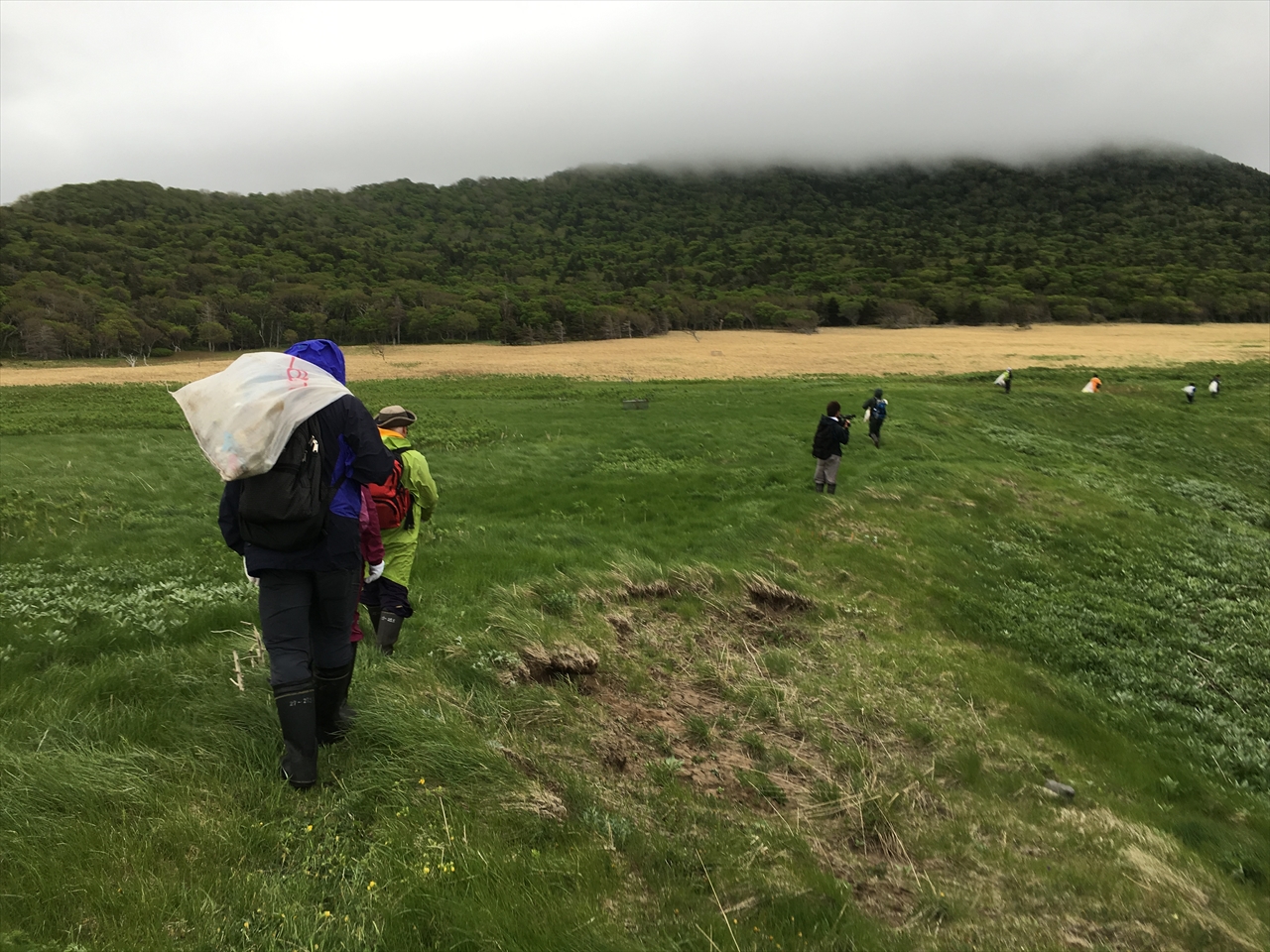 知床半島はクマが頻繁に出没するエリアだ。先頭を行くNPO法人しれとこラ・ウシ代表理事の湊氏がクマの生態についても熟知しているので問題はないが、そうでなかったら気軽には歩けないエリアだ。