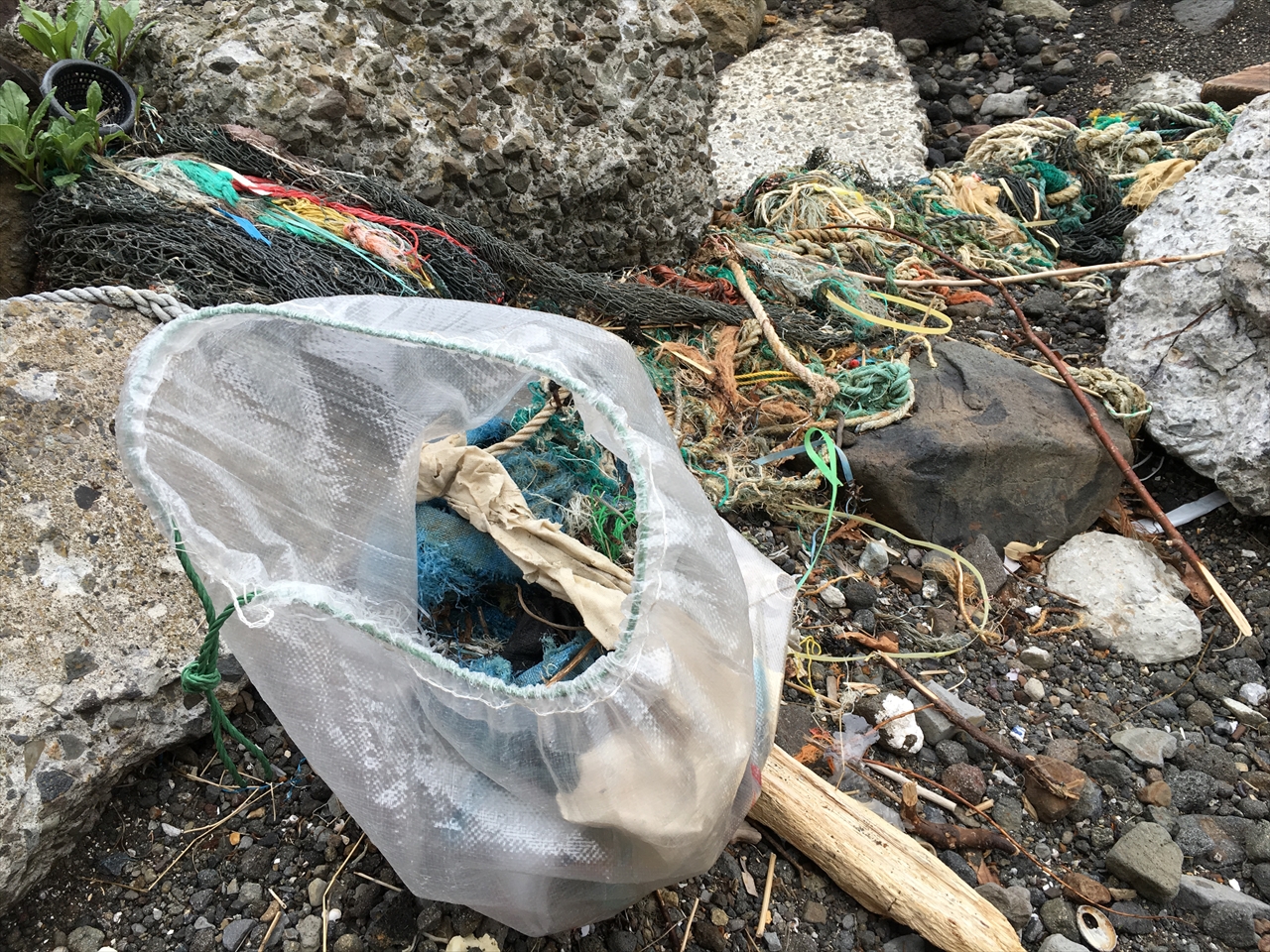 そんなわけで、最後この文吉湾で漁具ゴミ中心に拾いまくり、自分のビニール袋を満杯にした。
