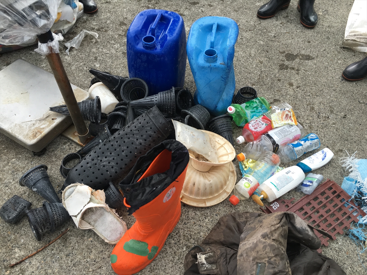 私にはどれが何なのかよくわかっていなかったが、ビーチクリーン活動を長年続けているJEAN事務局の小島氏は、何に使うものなのかだけでなく、その形の特徴などから、「韓国のカキ養殖で使われるもの」など、国まで特定していた。