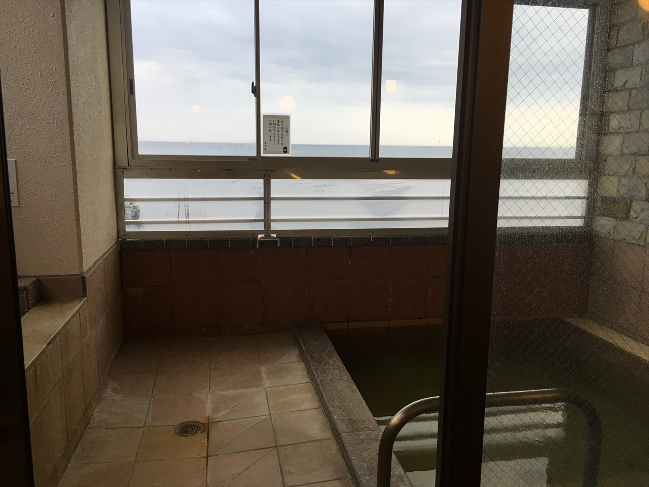 この時はかなり寒かったので閉めたまま入ったが、窓を開ければ目の前に広がるのは海。すぐ近くでカモメの甲高い声が響き渡り、漁船が横切ってゆくのを間近で見ることができる。