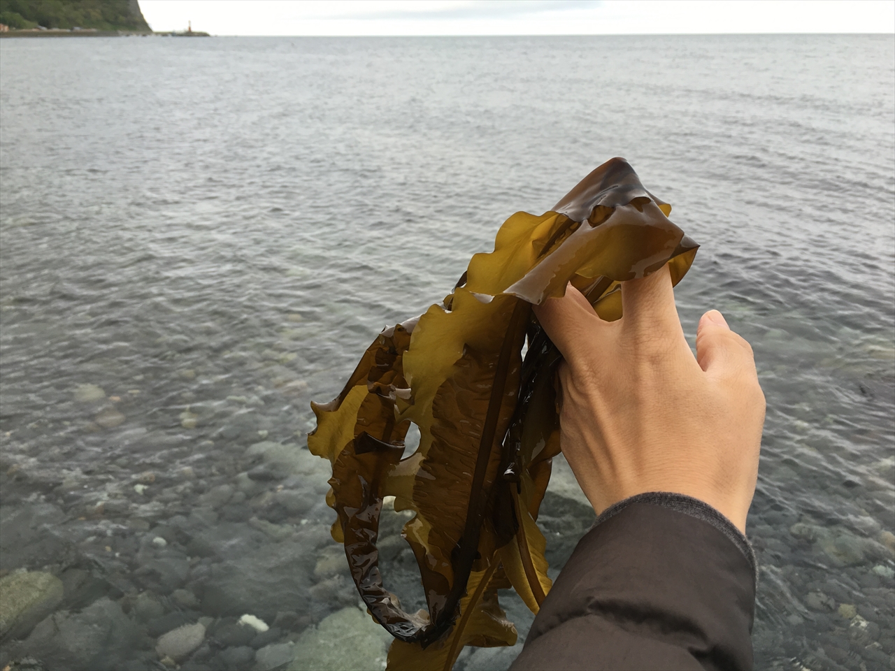 男性陣が服を脱いで湯船に浸かるまでの間、漂着昆布拾いなど(もちろん持ち帰ってはいません)。このままかぶりついても美味しそう。