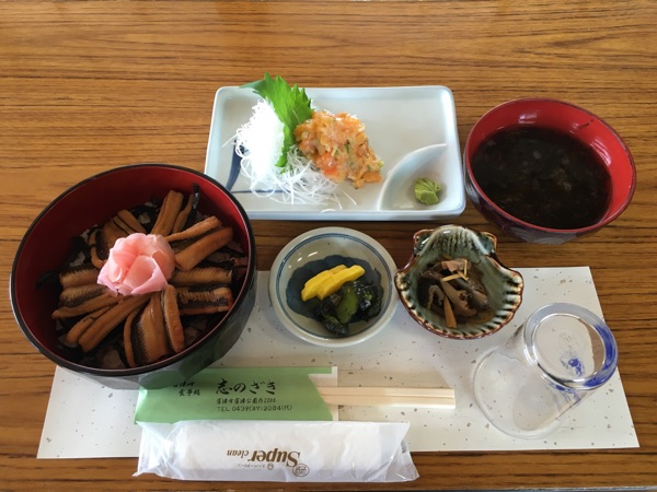 そのバカ貝と「はかりめ丼」を食べるため、富津岬先端、富津公園の漁師料理のお食事処「志のざき」に行った。