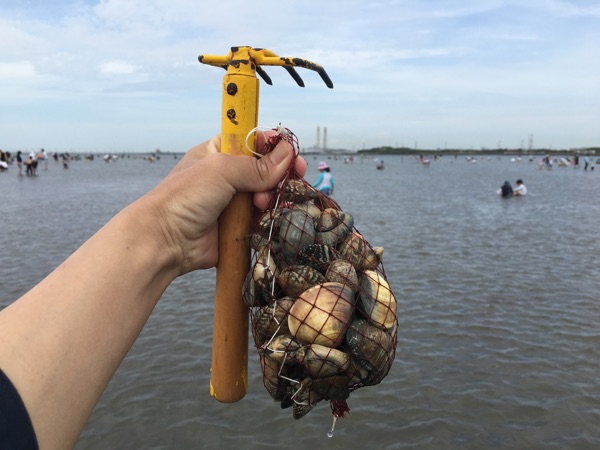 潮干狩りなんて小学生以来だ。当時は砂浜からすぐの場所に住んでいたので、春から秋にかけてはしょっちゅうたらい一杯採ってきて玄関で砂出しし、お味噌汁はじめいろんな料理にして食べたっけ。