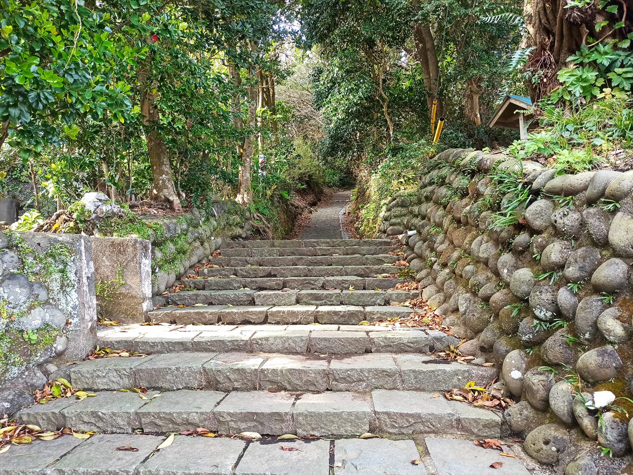山頂方向に延びる道の両脇も玉石びっしり。