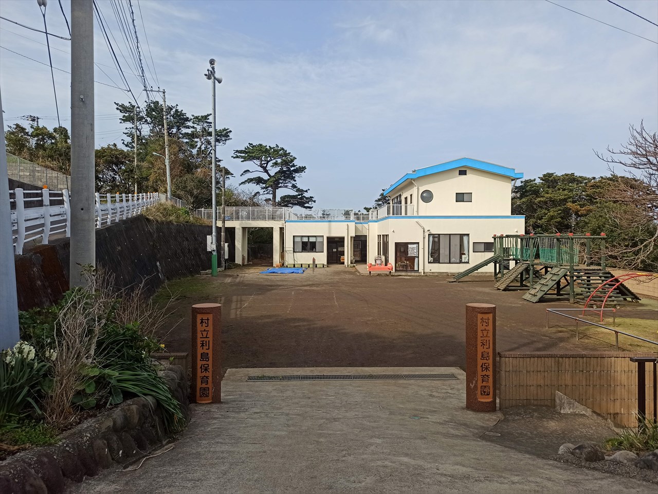 3月なのでまだ閉鎖されていたが、集落の一番下のところ、桟橋をちょっとあがった所には村営プールがあった。島はぐるり海に囲まれているも、そのほとんどが海食崖。桟橋のすぐ脇に小さな人工砂浜があるだけ。子供たちの水泳の授業のためにもプールが必要と言うことなのだろう。ウォータースライダーまであった。
