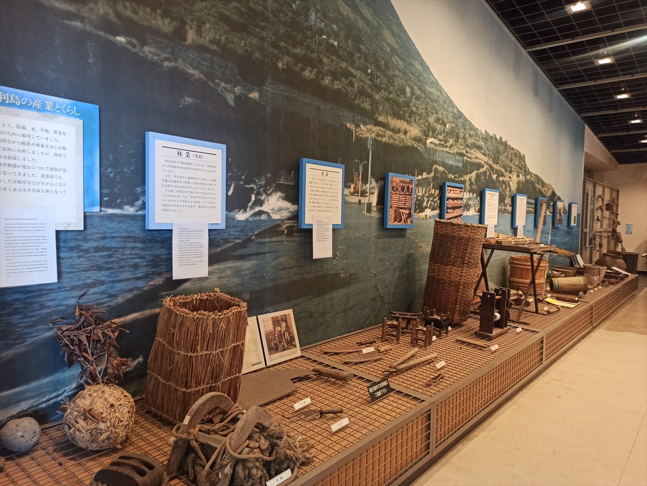 中に入ると産業や、林業・農業・漁業で使われてきた道具類などが陳列されている。