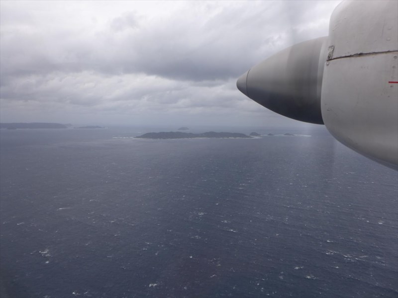 さんざん脅されて覚悟していたせいもあるが、思ったより揺れず、エメラルドグリーンの海を見下ろしながらの快適フライト。時間も10分ちょっとと一瞬だった。
