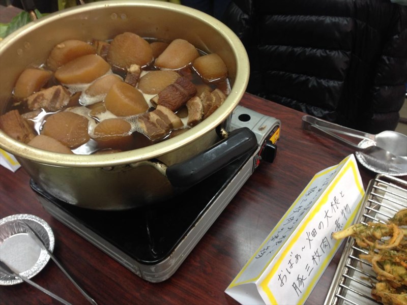 大量に作っているにもかかわらず、大根すべて角とって煮込んでいる丁寧さにまず驚き。そしてとろけるような柔らかさの豚三枚肉に感激。大根もしっかり味が染みこんでいて本当に美味しい。