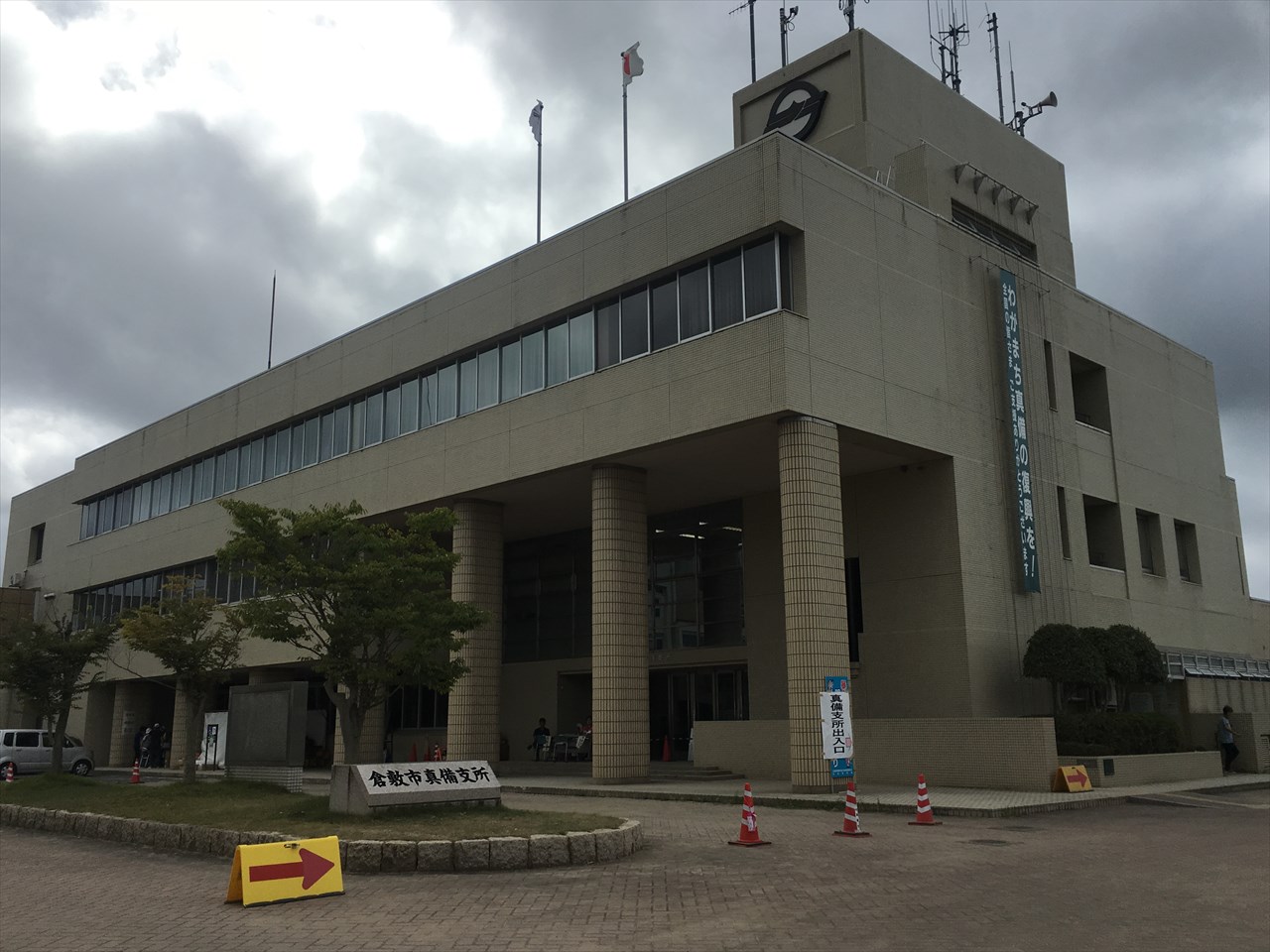 一番大きいのが、倉敷市真備支所の建物と駐車場を使った箭田サテライトだ。