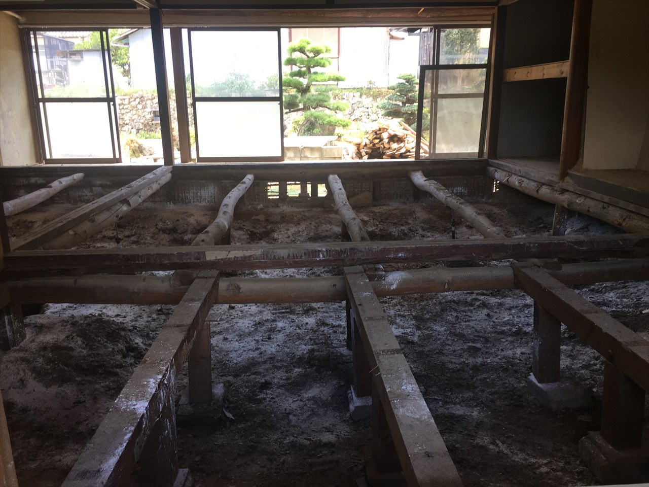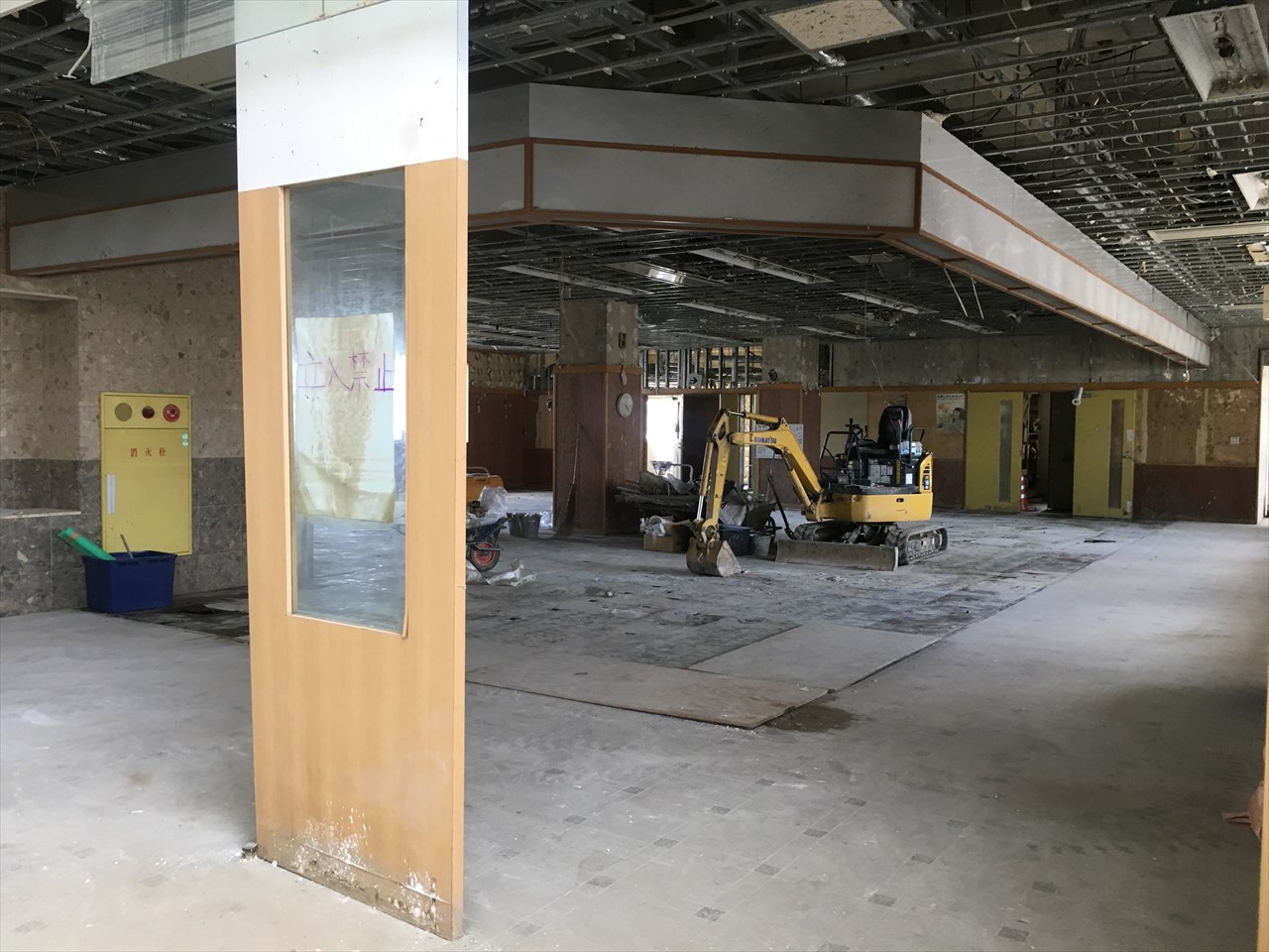 一般の家屋と違い床がコンクリートなので、この状態にすれば比較的早く再建できる。