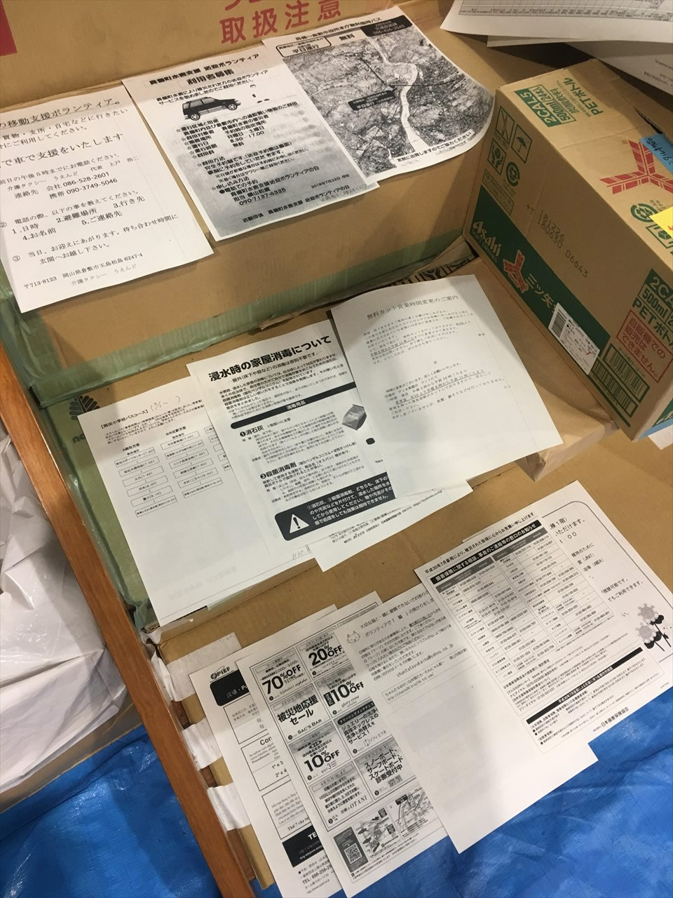 避難所にいる人には届いている情報も、親せき宅や市内アパートで仮暮らししている人には届いていないことも多く、それをSさんが集めてきて、呉妹地区で配布しようとしていた。自宅は住めない状況のところが多いが、それでも荷物を片付けたり床下乾燥の状況を確認するため、週末などには戻ってくる人が多いので。