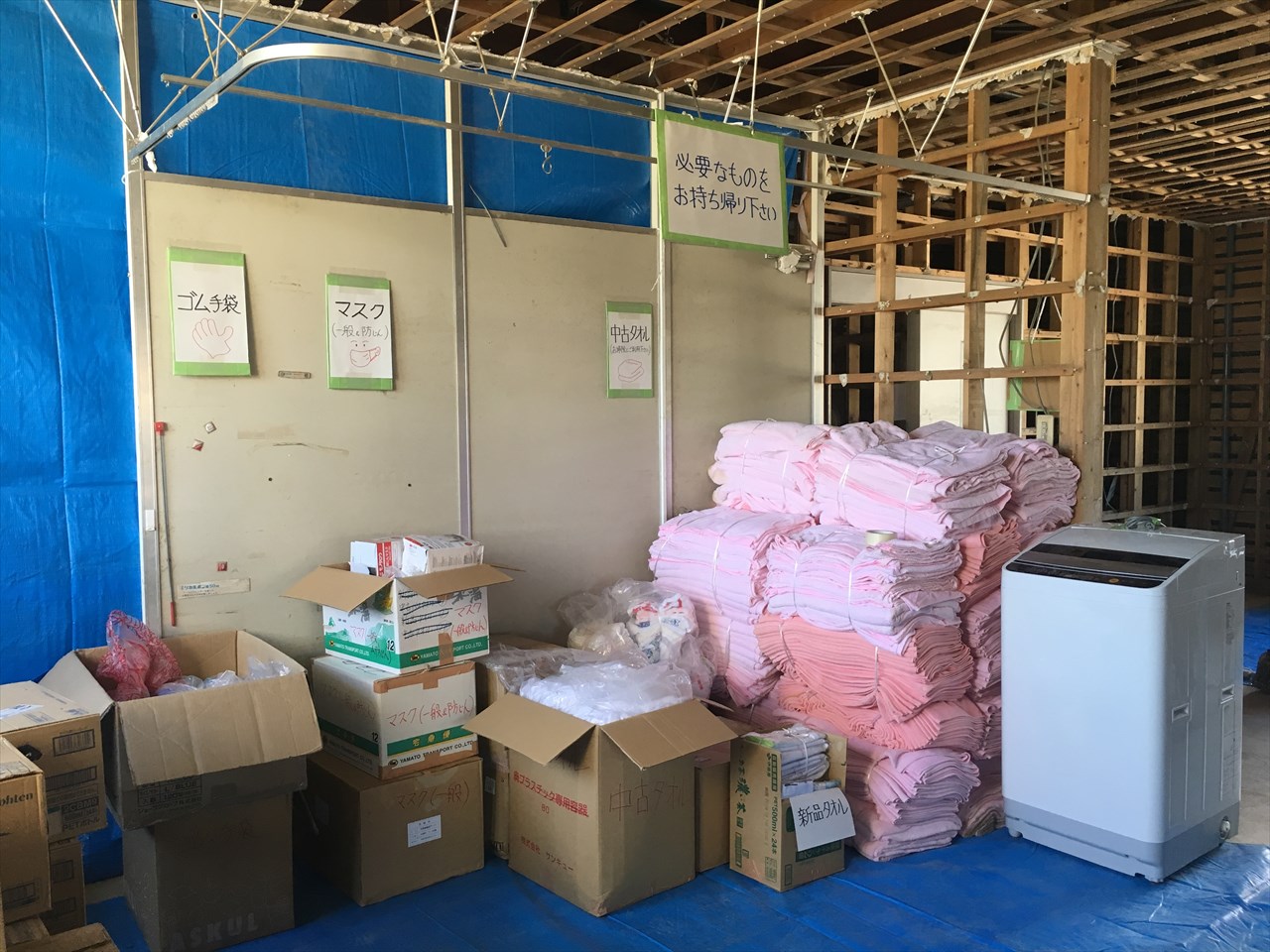 呉妹サテライトには、地域の被災者向けの物資も集められた。