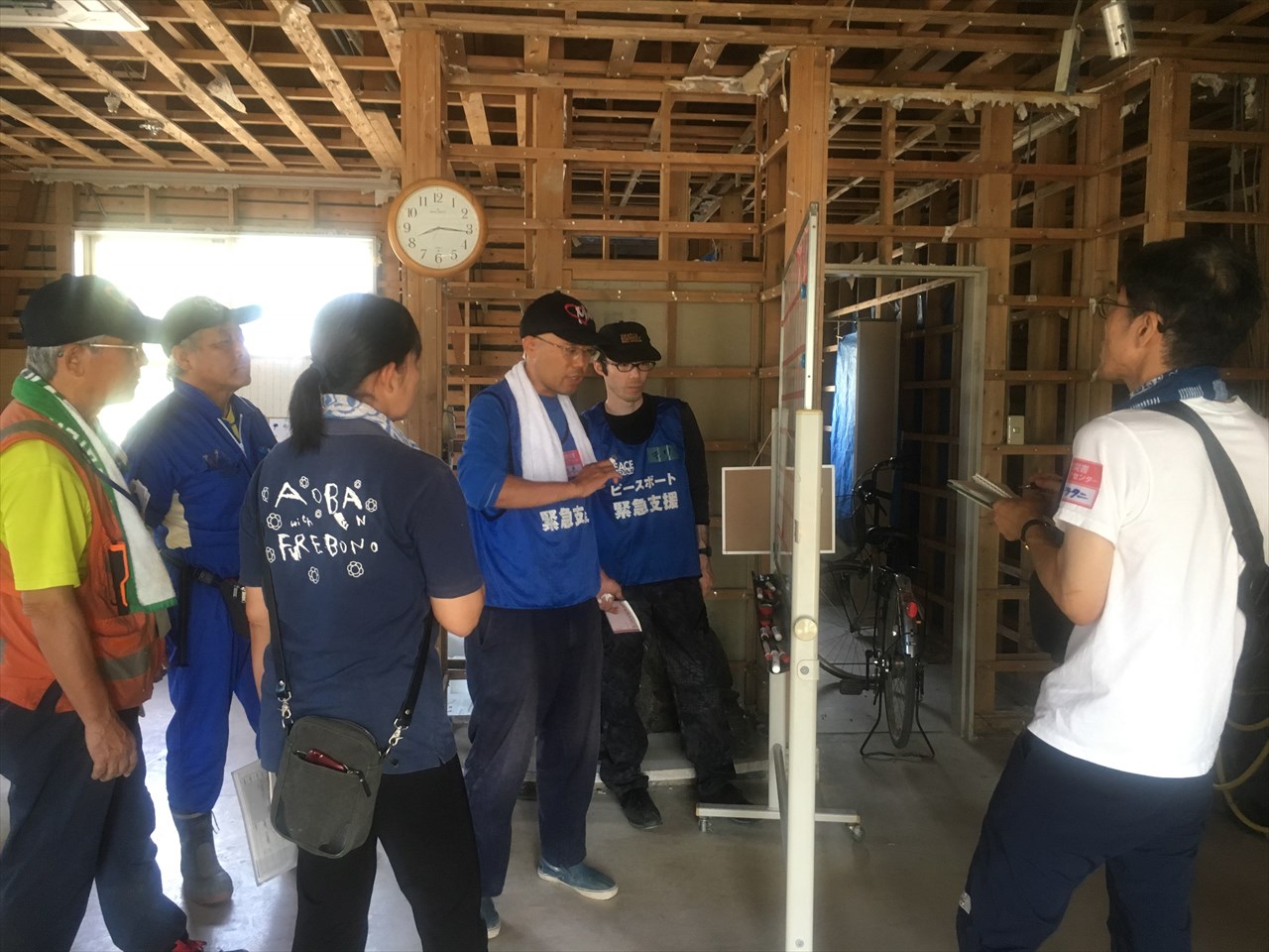 到着するとまずはブリーフィング。この日から活動に参加するのは自分含め3人ほどだったが、ピースボートのスタッフの人が写真や地図入りのプレゼン資料を使って丁寧に被害の概要や現在の状況などを説明してくれる。