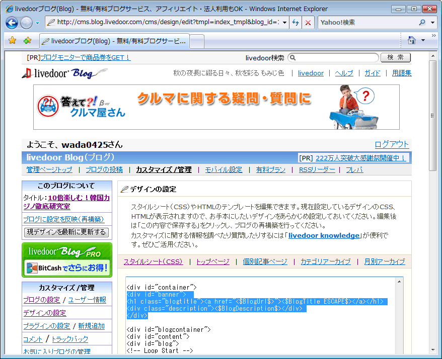 ブログカスタマイズ出張個人レッスンが来週に延びたので、Seesaaブログに続き、こっちも簡単にまとめておく(予習兼ねて)。